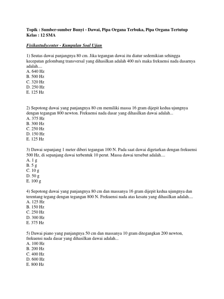 Thanks min mudah dimengerti. Perbandingan frekuensi nada atas pertama antara pipa organa a dan pipa organa b adalah. 6 responses to materi pipa organa tertutup dan terbuka beserta contoh soal unknown 30 mei 2016 0731. Untuk pipa organa tertutup.