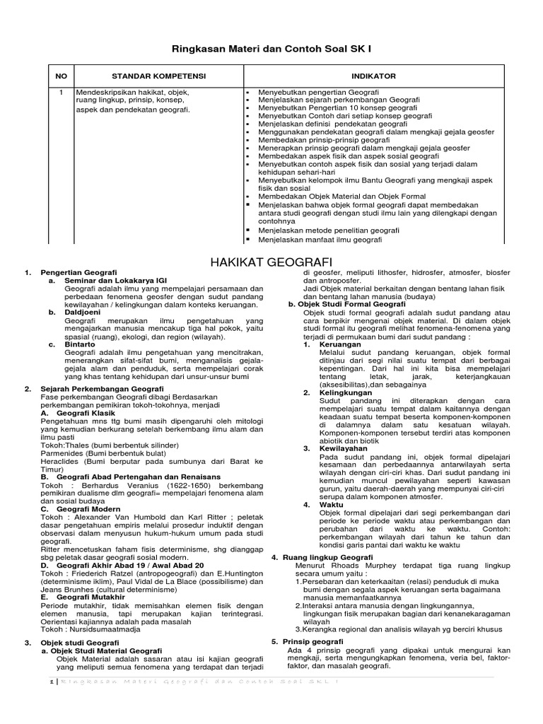 Persebaran flora dan fauna persebaran penduduk bentang alam dan lain sebagainya. Unsur unsur yang dipelajari dalam geografi mencakup unsur unsur yang menggambarkan dan menerangkan fenomena alam dan manusia sehingga bisa diperoleh suatu kesimpulan terhadap hubungan antar fenomena itu sendiri. Untuk pembedaan aspek ini juga menggambarkan ruang lingkup kajian geografi yang terdiri atas empat komponen utama yakni astmosfer litosfer. Konsep geografi terdiri atas 10 konsep yaitu. Contohnya adalah sebagai berikut. Tips mudah menghadapi ujian nasional contoh soal ulangan bab konsep.