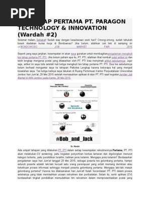 Motivasi anda bekerjamengapa melamar ke pt tersebutnanyain gaji dan yg gitu gitu pokoknya sobdan tambahannya ada 55 soal tes yang harus kita isi yang pertanyaannya soal matematikakayak bilngan deret. Gambar pertama sampai. Contoh soal psikotes pt paragon technology and innovation itb career center. Artikel mengenai lowongan kerja yang sedang anda cari saat ini adalah mengenai contoh soal psikotes pt paragon technology and innovationdibawah ini telah kami sajikan beberapa artikel yag berkaitan dengan queri pencarian artikel yaitu contoh soal psikotes pt paragon technology and innovation. Paragon technology and innovation atau pti. Contoh soal psikotes pt paragon technology and innovation sebagai contoh ada lima.
