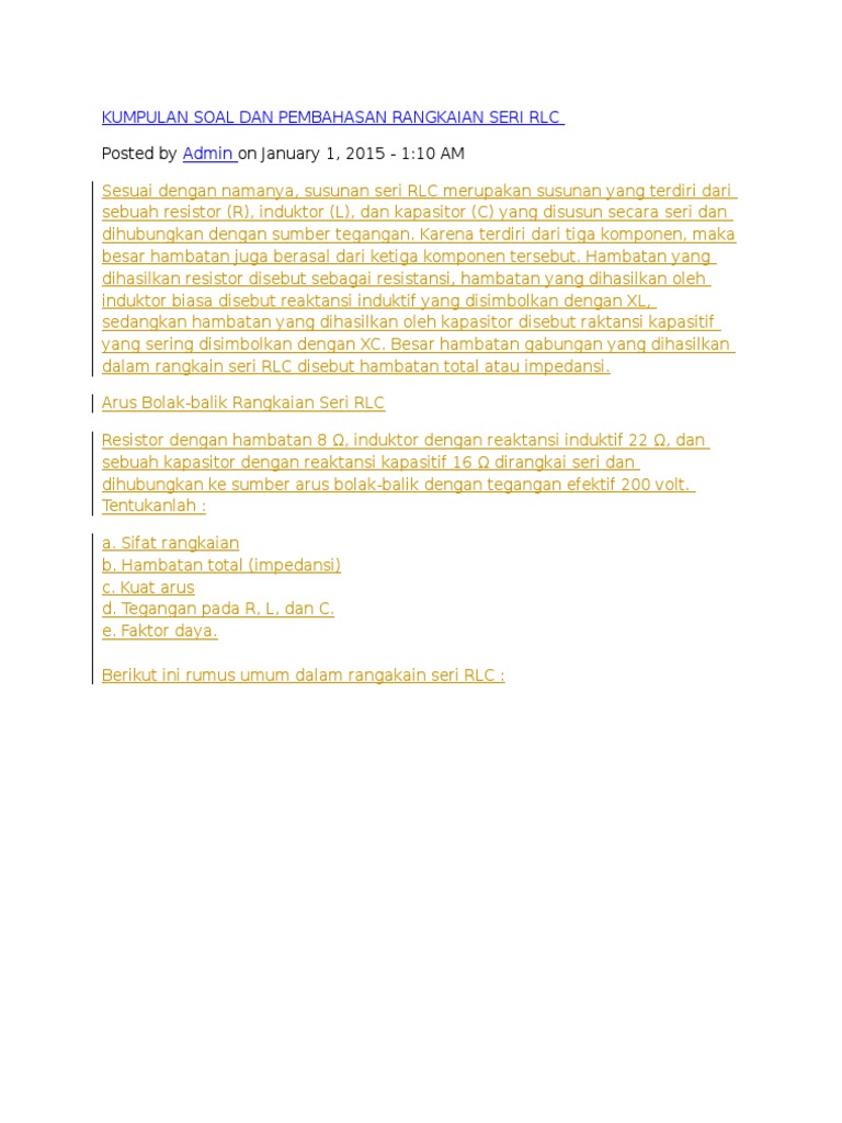 Contoh Soal Rangkaian Rlc Dan Pembahasannya Soalfismat Com