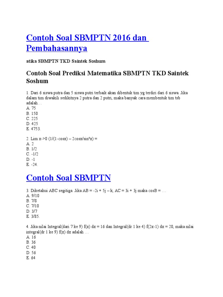 Contoh soal tpa sbmptn 2015 dan jawabannya contoh soal tes potensi akademik tpa gratis untuk sbmptn yang kemungkinan akan muncul pada soal soal nantinya. Artikel ini membahas kisi kisi utbk sbmptn 2020 kelompok soshum contoh soal utbk untuk tiap mata pelajaran jumlah soal dan alokasi waktu. Pada kesempatan kali ini admin pusat ilmu pengetahuan akan membagikan kumpulan ebook dan contoh soal sbmptn saintek dan soshum terbagi menjadi 2 bagian ebook dan contoh soal yaitu saintek dan soshum yang dapat teman teman akses baik melalui komputer maupun lewat smartphone teman teman. Soal sbmptn 2015 tkd saintek dan kunci jawaban download. Coba gratis latihan contoh soal sbmptn soshum 2020 dari edutore by gramedia. Pembahasan soal matematika ipa utbk tka saintek tahun 2019.