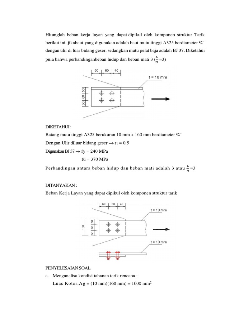 Menghitung beban maksimum dan beban ijin pada kolom struktur baja 1 duration. Contoh soal 1 kpts dengan beban terpusat di kedua sisinya. Contoh soal baja 2 sambungan kelompok iv. Bab 6 sambungan baut. Menghitung beban maksimum dan beban ijin pada kolom struktur baja 1 duration. Berat tanah kering oven 16 gr jika berat jenis tanah gs 271.