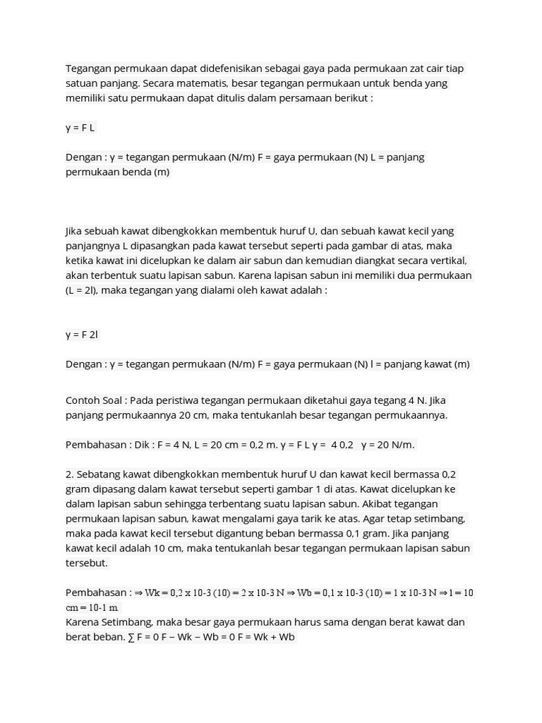 Untuk lebih jelasnya perhatikan contoh soal tegangan permukaan kapilaritas viskositas dan hukum stokes dibawah ini. Contoh soal tegangan permukaan pada sebuah peristiwa tegangan permukaan diketahui gaya tegang sebesar 4 n. Sebatang kawat dibengkokkan seperti huruf u. γ tegangan permukaan nm f gaya permukaan n l panjang kawat m contoh soal. Tentukan tegangan permukaan di air tersebut. Tegangan permukaan pada air.