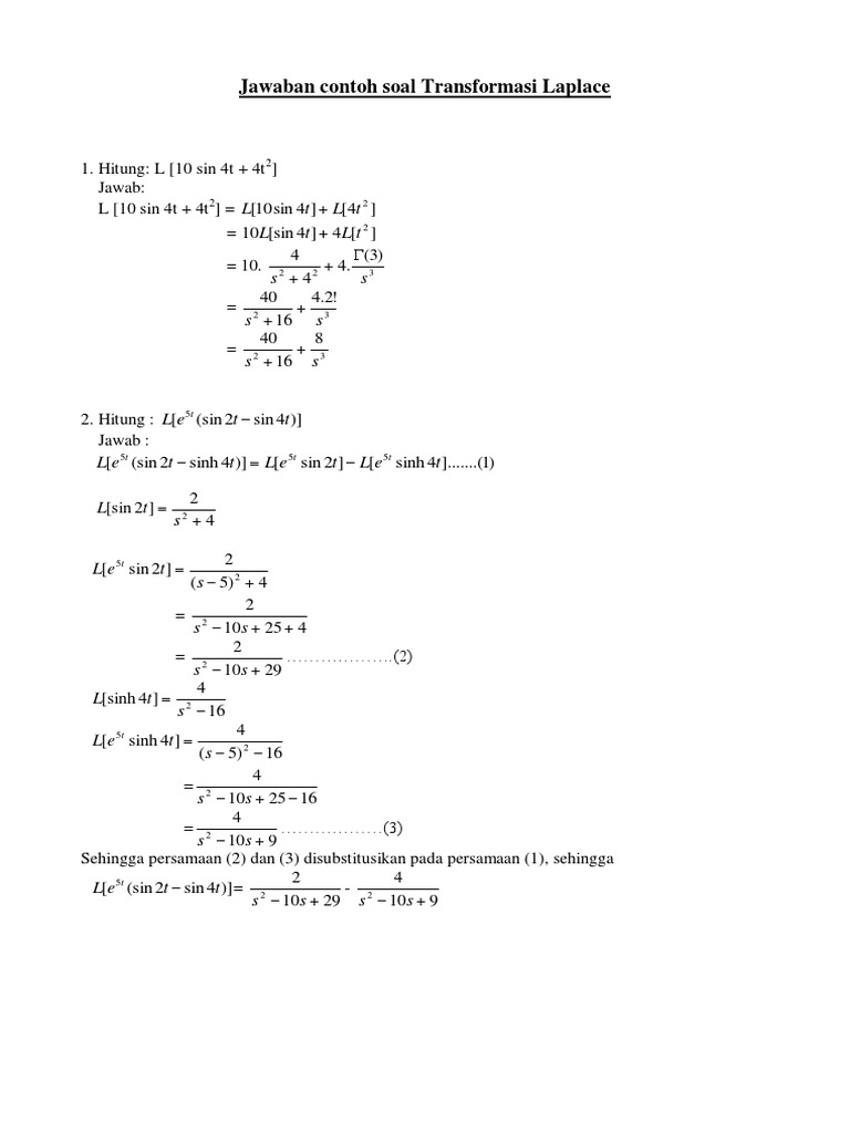 Contoh Soal Transformasi Laplace Dan Jawaban Docx