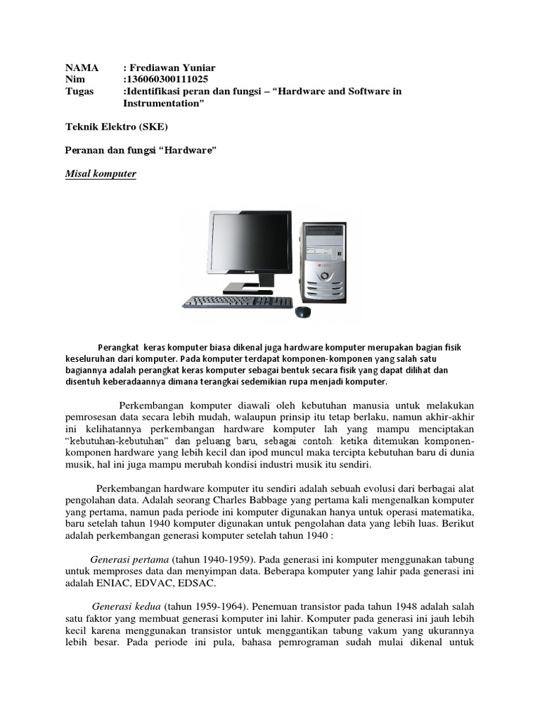 Contoh software dan hardware. Dalam dokumen ini dijelaskan secara ringkas mengenai apa itu hardware dan software tak lupa dijelaskan pula contoh dan masing masing fungsinya. Pengertian ram dan rom. Contoh hardware dan software komputer beserta pengertian dan fungsinya pada komputer terdapat tiga komponen sangat penting yang berguna dalam menjalankan sistem komputer maka kerja dan jalannya komputer bergantung pada ke tiga komponen tersebut. Di bawah ini adalah beberapa contoh hardware pada komputer antara lain. Contoh hardware input device. Hardware adalah pengertian macam fungsi jenis dan contoh dosenpendidikancom istilah hardware sering kita kenal pada perangkat komputer karena komputer tersusun atas perangkat hardware dan software.
