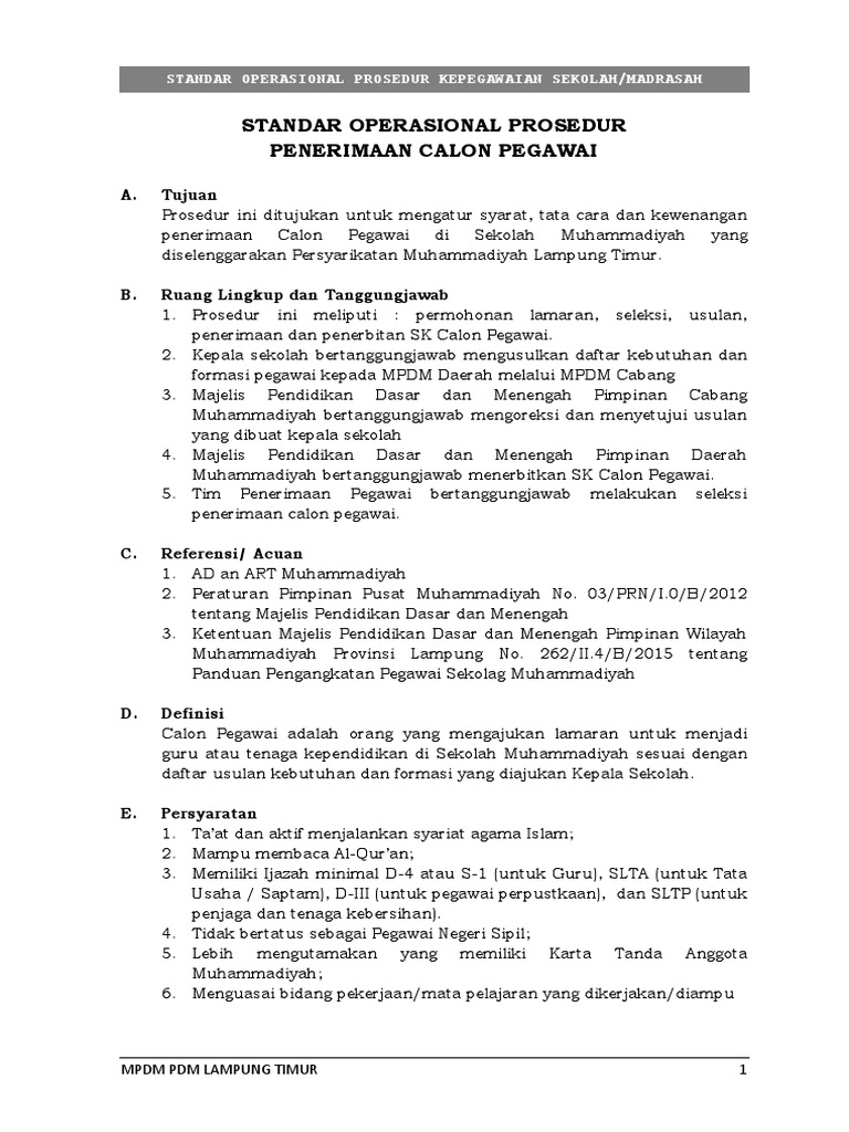 Standar operasional prosedur subag kepegawaian 042013. Pengertian standar operasional prosedur sop standar operasional prosedur atau disingkat sop merupakan dokumen yang berurusan dengan prosedur yang dilakukan secara kronologis untuk menyelesaikan sebuah pekerjaan yang tujuannya untuk memperoleh hasil kerja yang paling efektif dari para pekerja dengan biaya yang semurah murahnya. Sop standar operasional prosedur adalah dokumen yang berisi prosedur kerjainstruksi kerja standar yang dibuat oleh perusahaan untuk digunakan sebagai pedoman dan panduan dalam melakukan berbagai aktivitas di perusahaan. Contoh standar operasional dan prosedur sop bahwa untuk mewujudkan tata kelola kepemerintahan yang baik dan bersih good governance and clean government dan seiring dengan semangat reformasi birokrasi maka salah satu upaya yaitu dengan menerapkan standar operasional prosedur sop dalam penyelenggaraan pemerintahan. Jenis format standar operasional prosedur video ini dapat digunakan untuk menjelaskan langkah langkah kerja bagi mereka yang lebih paham dengan melihat dari pada membaca. Standar operasional prosedur adalah penetapan tertulis mengenai apa yang harus dikerjakan kapan dimanaoleh siapa dan dibuat untuk emnghindari terjadinya variasi dalam proses pelaksanaan kegiatan yang dilakukan oleh pegawai yang akan mengganggu kinerja.