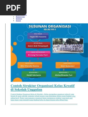 Contoh struktur organisasi kelas yang kreatif. Miniatur sebuah negara yang dijalankan dalam ruang lingkup yang paling kecil. Keberhasilan suatu organisasi tidak terletak hanya pada satu orang. Ayo jadikan kelas kita enak dipakai untuk belajar dan semua murid merasakan manfaatnya dai kinerja yang baik. Tentu yang namanya organisasi harus mempunyai struktur yang pasti agar tugas tugas yang menjadi ruang lingkup kelas itu dapat dengan jelas dibagi bagi. Ini contoh struktur organisasi kelas sangat standar kan. Contoh struktur organisasi kelas di sekolah kelas merupakan organisasi terkecil yang berada di suatu sekolah.