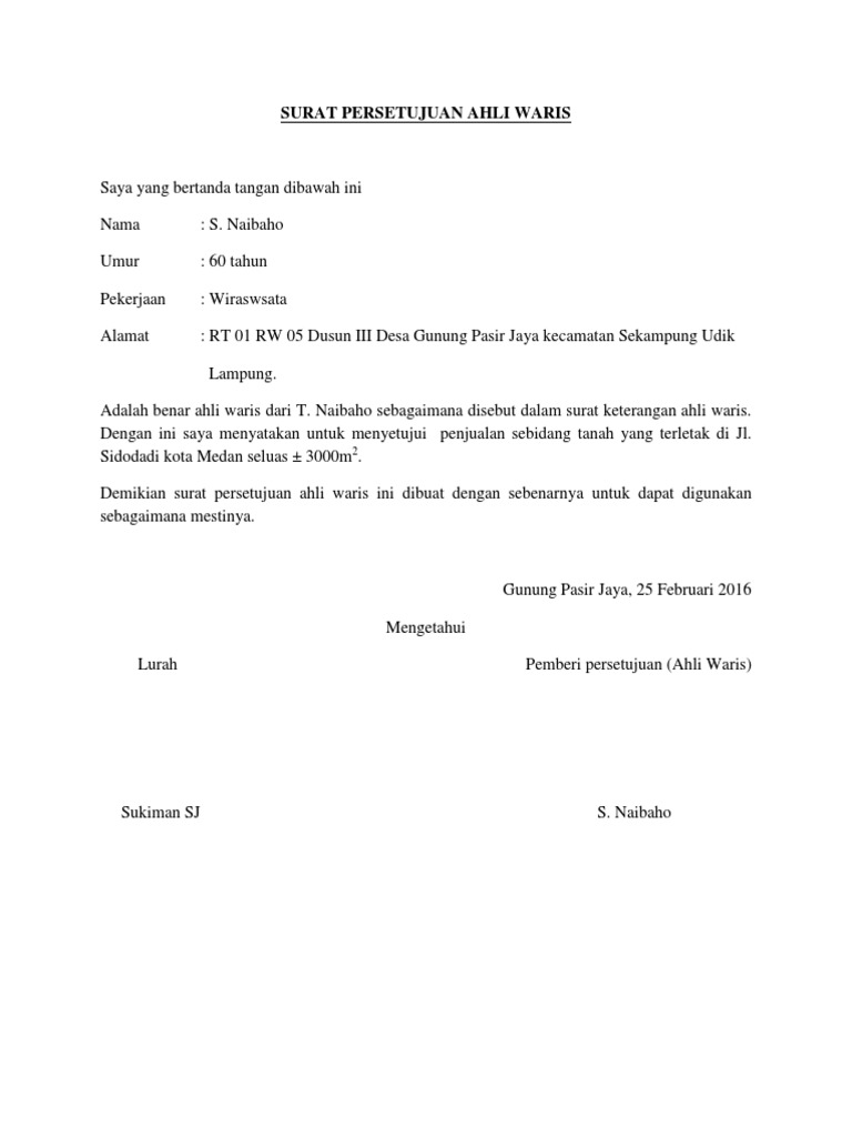 12 Contoh Surat Ahli Waris Terbaru Dan Terupdate Teropong