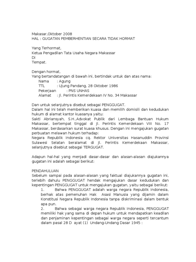 Bahwa setelah menerima surat keputusan kepala dinas pendidikan kota medan no. Contoh surat gugatan ptun surat gugatan mataram 25 november 2006 kepada yth. Contoh surat kuasa insidentil dan surat permohonan izin insidentil 480 kib contoh surat kuasa khusus 440 kib contoh surat gugatan 490 kib contoh gugatan berdasarkan pasal 3 uu peratun 475 kib contoh gugatan badan hukum perdata 490 kib contoh surat kuasa khusus tergugat 445 kib contoh surat jawaban tergugat 450 kib. Contoh surat gugatan tun. Academiaedu is a platform for academics to share research papers. Untuk dapat mendownload contoh surat gugatan ptun dalam format doc silahkan klik link berikut ini.