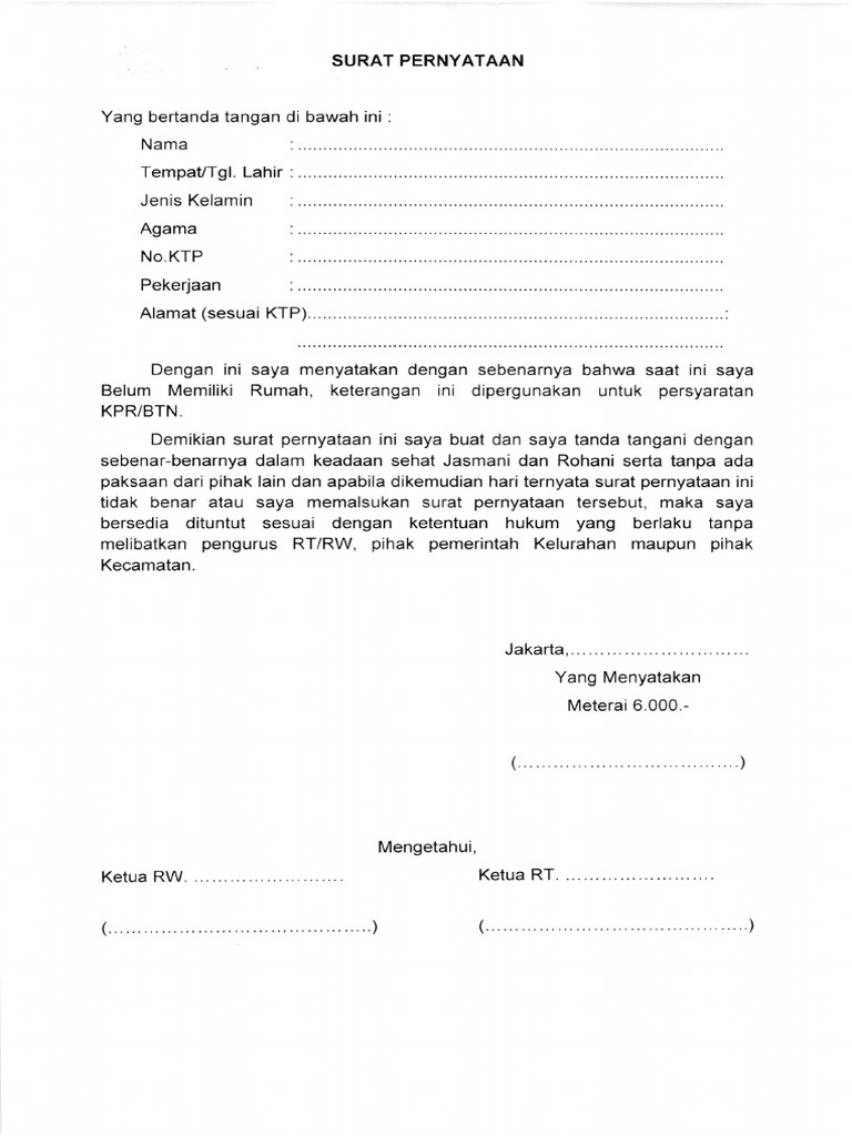 Contoh surat keterangan belum memiliki rumah. Contoh surat keterangan belum memiliki rumah untuk persyaratan kpr surat pernyataan penghasilan contoh surat pernyataan kerja oktober 2015 siger property 17 contoh surat keterangan biasa dinas kerja kuliah kpr contoh surat perjanjian sewa ruko kios pdf doc lamudi 10. Contoh surat keterangan belum memiliki rumah untuk persyaratan kpr ditulis murad maulana 7302015 tulis komentar sekitar tahun 2008 an saya pernah membeli perumahan pns kpr bank btn yang bekerjasama dengan korpri. 15 contoh surat pernyataan paling lengkap untuk berbagai kebutuhan belakangan ini penggunaan surat memang bisa dibilang sudah semakin minim terlebih untuk urusan pribadi. Contoh surat pernyataan belum memiliki rumah dari kelurahan yang baik dan benar sebagai referensi pembuatan surat resmi yang dapat diunduh secara gratis dan lengkap. Surat keterangan sakit yang dikeluarkan oleh rumah sakit biasanya dipergunakan pada instansi resmi seperti perusahaan pemerintahan dan lembaga pendidikan jenjang tinggi. Mintalah surat pernyataan belum memiliki rumah dari lingkugan rt dan rw caranya dengan meminta form surat permohonan dari kelurahan yang berisi data pribadi tujuan surat itu dibuat isi saja untuk keperluan permohonan kredit kepemilikan rumah btn.