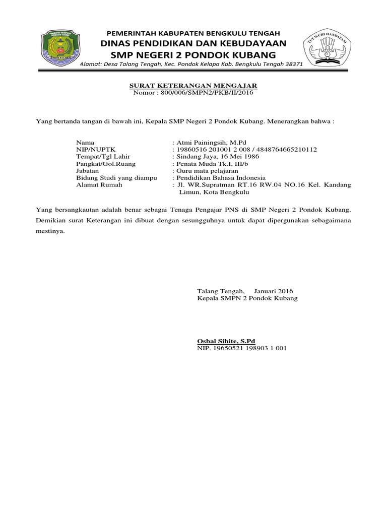 Fb twitter wa line pinterest g linkedin. Surat aktif mengajar menjadi kebutuhan penting bagi seorang guru dalam hal pemberkasan untuk mengurus berbagai hal seperti sertifikasi surat keterangan tentang tmt terhitung mulai tanggal guru tersebut melalui kegiatan pengajaran di sekolah tersebut dan surat keterangan yang memuat mata pelajaran yang menjadi bidang pengajaran guru tersebut di sekolah. Mas edi contoh surat 2 komentar. Berikut merupakan beberapa contoh yang dapat anda jadikan sebagai referensi yang baik untuk membuat surat keterangan aktif.