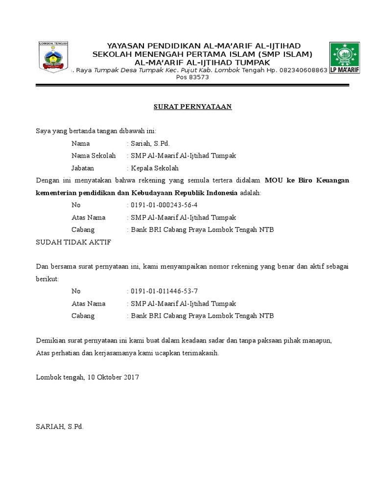 Yaaah sebagai anak rantau ane juga pernah diminta surat beginian ketika mu buat rekening di tanah rantau. Cv serepat serasan engky martin direktur dokumen contoh surat pernyataan rekening bank ini bisa didownload dalam format microsoft word pada link dibawah ini. Secara umum format surat keterangan aktif kerja mengikuti format surat resmi dengan mencantumkan kop surat dan logo resmi perusahaan ditandangani oleh direktur serta dibubuhi stempel perusahaan. Sehubungan dengan pencairan dana guru sekolah minggu buddhis oleh kementrian agama kemenag provensi nusa tenggara barat maka saya pemohon atas nama denawanto mengajukan permohonan surat keterangan rekening aktif kepada bank bri kcp cakera negara guna memperlancar proses pencairan dana tersebut. Itulah yang dapat kami bagikan terkait contoh surat keterangan rekening aktif dari bank.