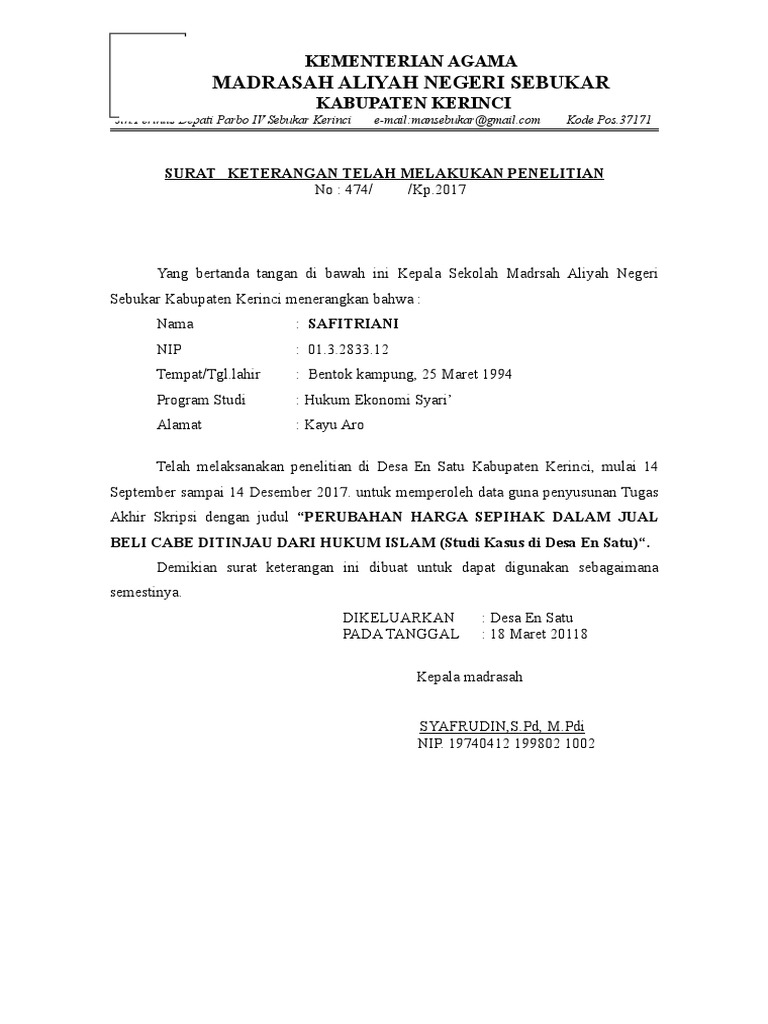 Contoh surat pernyataan telah melakukan penelitian surat pernyataan nomor. Demikian surat keterangan ini untuk dapat dipergunakan sebagaimana mestinya. Telah selesai melakukan penelitian di madrasah tsanawiyah mts muhammadiyah 2 kedungkandang malang jawa timur pada tanggal 10 april 2012 sampai tanggal 01 juni 2012 dengan baik. Maka berikut ini kami berikan contoh surat keterangan penelitian untuk digunakan di skripsi atau tesis. Contoh surat keterangan telah melakukan penelitian skripsi yang baik dan benar blog yang membahas tentang pendidikan teknologi kesehatan. Ada banyak format yang telah tersedia di internet hanya saja variasinya tak terlalu banyak.