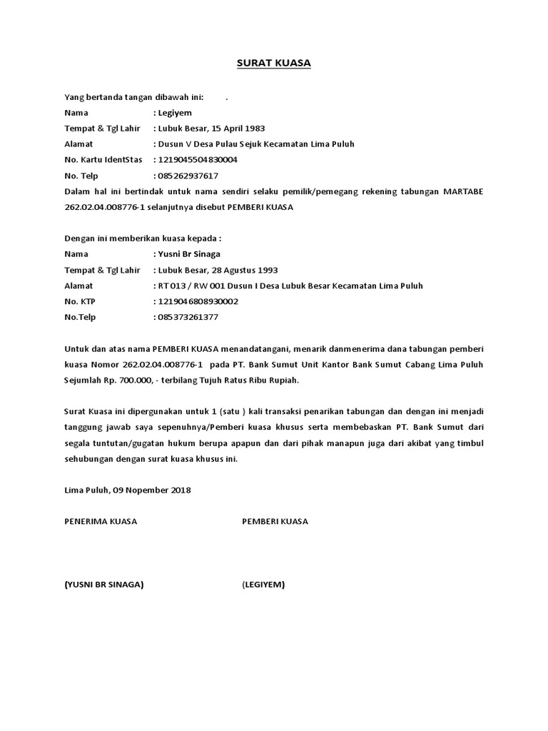 Jangan lupa tambahkan materai 6000 satu buah saja di tengah tengah tanda tangan kedua belah pihak dan ditandatangani oleh kedua belah pihak tersebut. Namun ia tidak bisa mengambilnya dan anda tidak bisa mentransfer uang tersebut ke rekening kerabat anda yang membutuhkan uang itu. Contoh surat kuasa bank dalam dunia perbankan surat kuasa bukanlah sesuatu hal yang jarang.