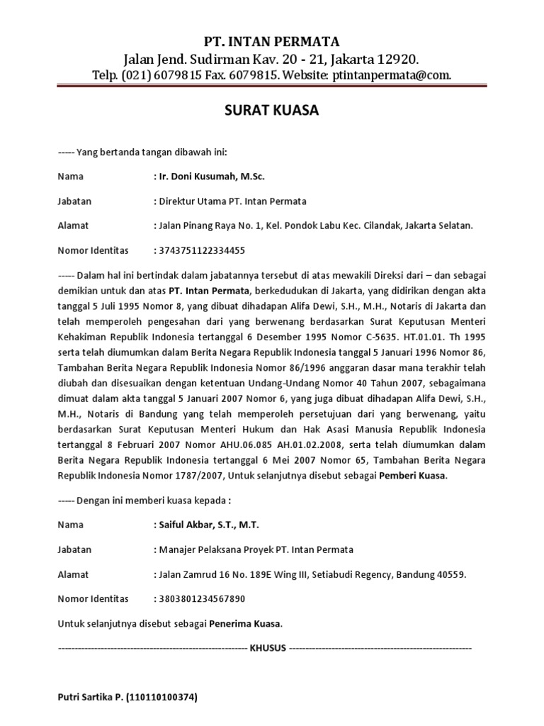 Direktur utama pt pandawa lima corporation. Khusus bertindak untuk dan atas nama pemberi kuasa bertindak untuk dan atas pt pandawa lima corporation untuk melakukan hal hal. Contoh surat kuasa dari direksi kepada. 29 contoh surat kuasa berbagai keperluan yang benar surat kuasa pengertian fungsi macam unsur gurupendidikancom untuk pembahasan kali ini kami akan mengulas mengenai surat kuasa yang dimana dalam hal ini meliputi pengertian fungsi macam dan unsur nah agar lebih dapat memahami dan dimengerti simak ulasan selengkapnya dibawah ini. Contoh surat kuasa direktur untuk berbagai keperluan sebagai referensi pembuatan surat lamaran kerja yang baik dan benar dapat diunduh gratis. Orang yang diberi kuasa tersebut akan menggantikan pemberi kuasa dalam berbagai tujuan maupun pekerjaan.