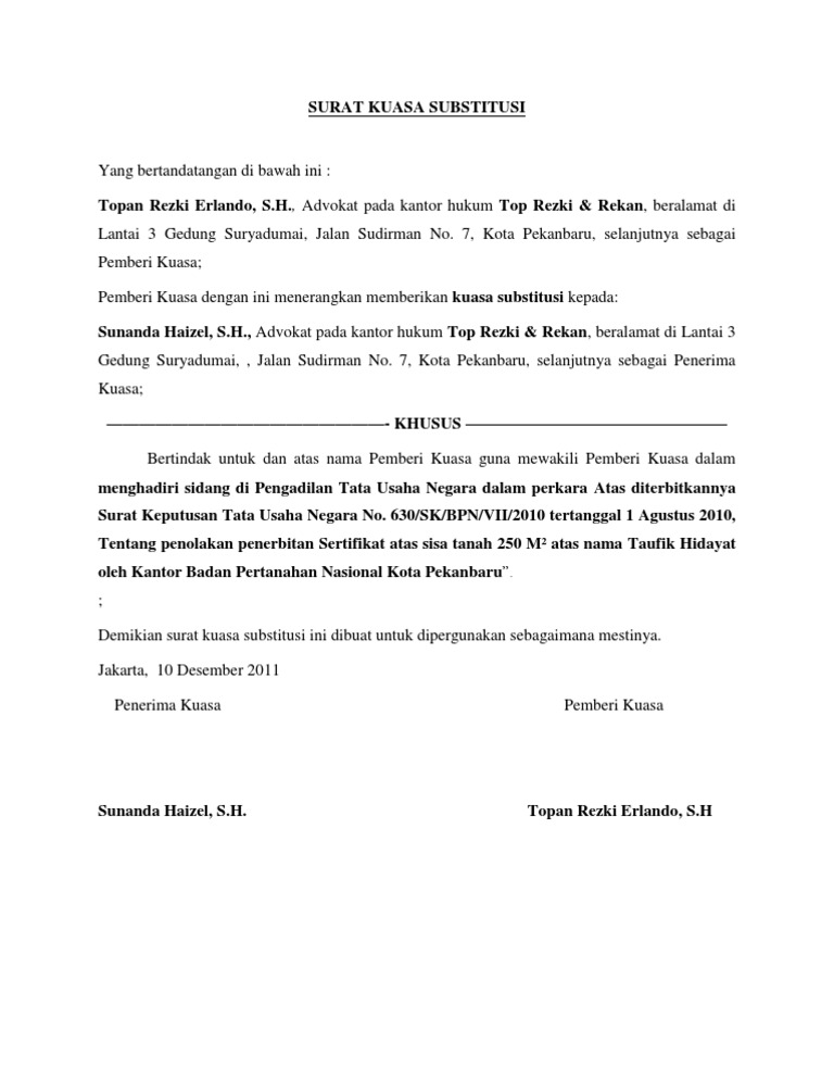 Itu tadi penjelasan singkat mengenai contoh surat kuasa doc yang dapat kami berikan pada kesempatan kali ini. Seseorang tak boleh melakukan semua kecuali izin yang ditanda tangankan di atas materai. Salah satunya ketika kita tak bisa melakukan sesuatu dan membutuhkan seseorang untuk melakukannya. Penerima kuasa pemberi kuasa. Siraj sullivan shmh adalah advokat dan penasihat hukum pada kantor hukum siraj sullivan associated beralamat di plaza senapelan lantai 2 jl. Contoh surat kuasa khusus dan substitusi have a graphic from the othercontoh surat kuasa khusus dan substitusi in addition it will feature a picture of a kind that might be observed in the gallery of contoh surat kuasa khusus dan substitusi.