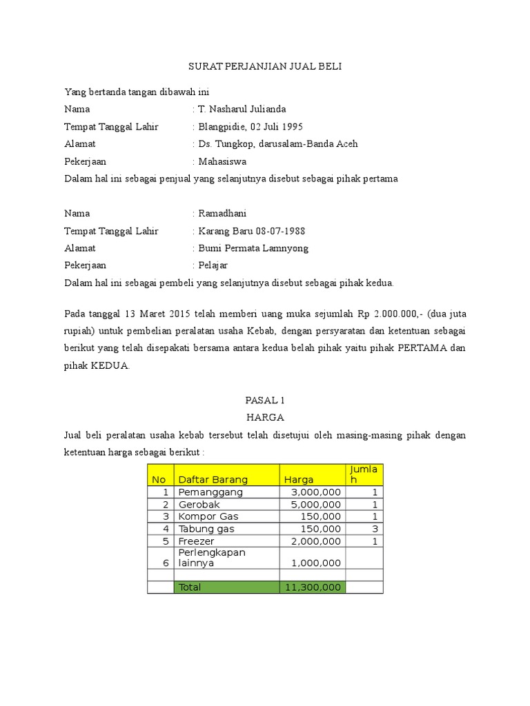Contoh surat perjanjian jual beli tanah lengkap dengan pasal pasal dan materai surat perjanjian jual beli adalah surat yang dibuat oleh pihak pihak yang ingin melakukan perjanjian jual beli harta benda berharga dengan nilai harga yang cukup besar seperti kendaraan bangunan tanah perhiasan dan barang barang berharga lainnya sebagai alat pengikat dan bukti kesepakatan yang. Tuliskan alamat lengkap rumah yang jadi objek jual beli dengan luas tanah kurang lebih m 2 dan luas bangunan kurang. Surat perjanjian jual beli rumah dengan uang muka kami yang bertanda tangan di bawah ini.