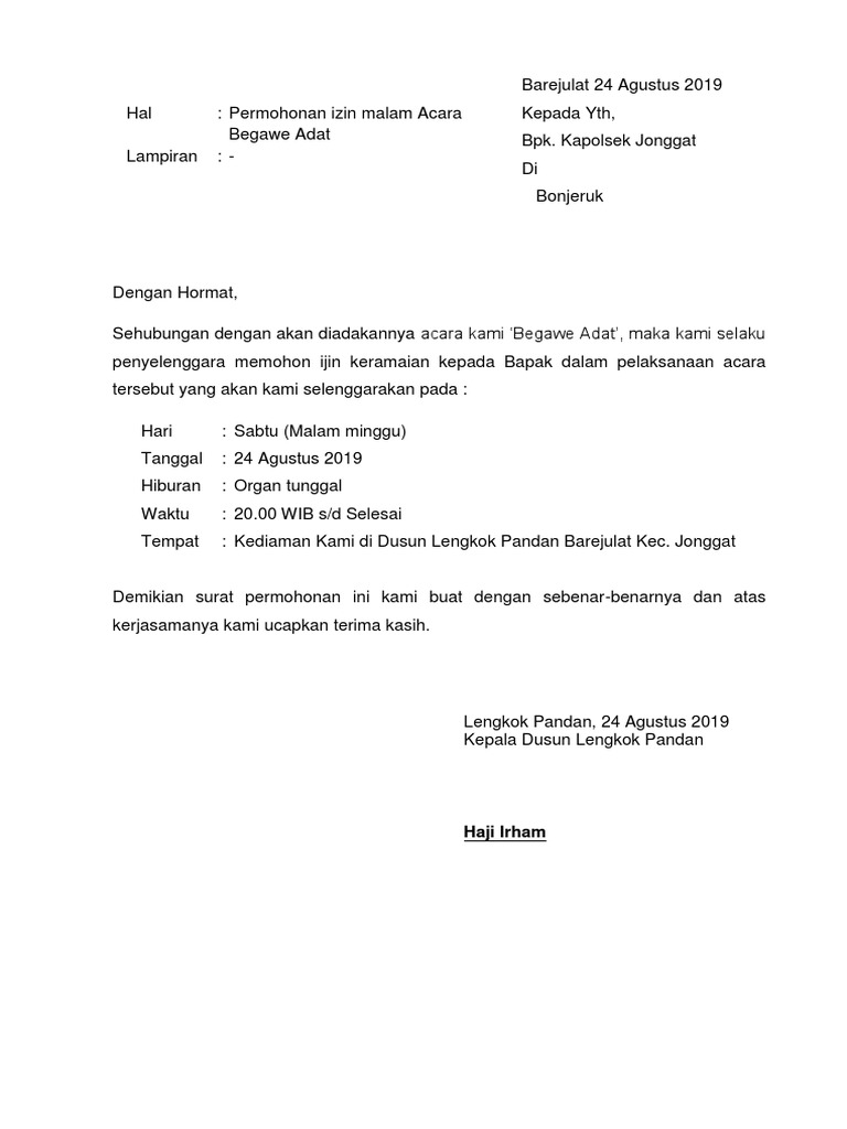Contoh surat pemberitahuan kepolisian pengadaan acara pada kesempatan ini saya akan memberikan contoh surat kepada polisi pemberitahuan dalam pengadaan sebuah acara dan mudah mudahan dengan contoh surat pengadaan polisi acara pengadaan ini bisa bermanfaat bagi kalian semuacontoh surat pemberitahuan kegiatan ke kepolisian izin keramaian ke polisi segera lihat contoh pemberitahuan izin. Baik itu surat yang dipergunakan oleh perusahaan instansi pemerintahan lembaga organisasi dan perseorangan. Tidak heran kalau sudah semakin banyak orang meninggalkan penggunaan surat sebagai media komunikasi. Contoh surat permohonan izin kegiatan yang baik dan benar serta manfaat didalamnya ada banyak sekali manfaat atau fungsi dari surat permobohan izin kegiatan diantaranya adalah sebagai pedoman pekerjaan sebagai alat pengingat dengan menjadikannya sebuah arsip. Surat permohonan izin kegiatan bantuan dan sekolah format dan contoh surat efendi march 19 2020 contoh surat no comments makalahid mengetahui mengenai apa itu surat permohonan izin merupakan hal yang penting karena hal inni berfungsi ketika anda tidak dapat meminta izin secara langsung kepada orang tersebut. Berisi contoh surat permohonan kerja permohonan bantuan dana kegiatan permohonan izin dinas kerjasama beasiswa permohonan maaf dsb.