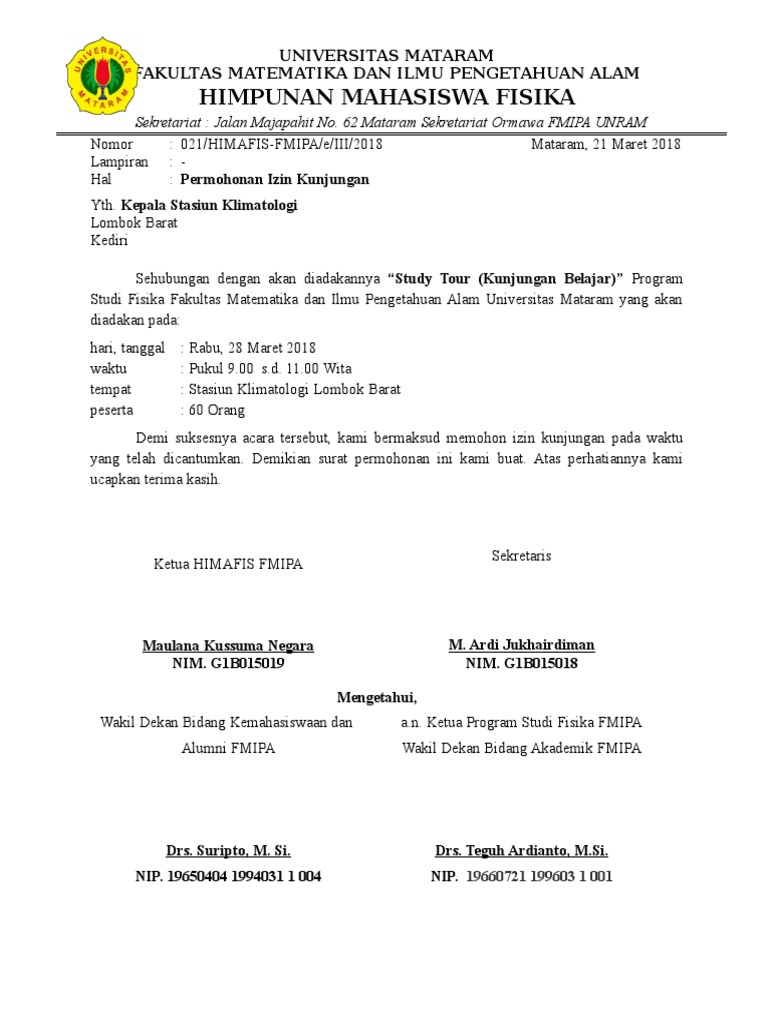 Selamat datang kepada teman staff tata usaha dimanapun anda berada. Contoh surat permohonan kunjungan study ekskursi ke perusahaan semen gresik oleh mahasiswa jurusan berikut ini adalah contoh tentang contoh surat permohonan kunjungan study ekskursi ke perusahaan semen gresik oleh mahasiswa jurusan. Atas perkenan bapakibu kami ucapkan terima kasih. Semoga memberi manfaat bagi anda yang mempelajari dan saya yang membuat contoh surat. Laporan perjalanan study tour tim capung ke museum ullen sentalu kaliurang sleman 16 september 2016 bab i pendahuluan 1. Surat keluar dan surat masuk adalah pekerjaan yang biasa kita lakukan selaku staff tata usaha pada kesempatan kali ini admin akan mencoba membagikan contoh surat keluar yaitu surat permohonan kunjungan.