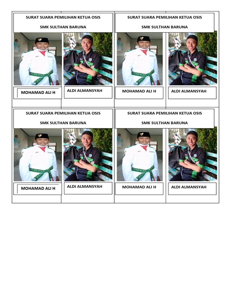 Contoh surat suara pemilihan ketua osis. Hari ini kami mempublikasikan tentang contoh surat suara pemilihan ketua osis pilkaos barukami mempublikasikan contoh surat suara ini karena sebentar lagi di sekolah teman teman semua beberapa bulan lagi pasti akan berganti ketua osis baru dan ini sebagai contoh barang kali teman teman mau membuat surat suara seperti contoh surat suara dari kami ini. Surat suara yang digunakan dalam pemilihan ketua osis smk informatika sumedang tahun 2013 by أرينالدي in types instruction manuals surat surat suara osis smk sma smp informatika teknologi ket. Cukup sekian contoh surat suara pemilihan ketua osis ini semoga bermanfaat. Pelaksanaan pemilihan ketua dan wakil ketua osis. Surat suara pemilu ketua wakil ketua osis 23 agu jenjang pendidikan smpmts dan smamasmk tentunya memiliki organisasi intra sekolah yang disebut dengan osis dan osis ini tentunya diketuai oleh ketua dan wakil ketua osis dan setiap tahun ajaran baru pasti akan dipilih kepengurusan osis yang baru. Cukup sekian contoh surat suara pemilihan ketua osis ini semoga bermanfaat.