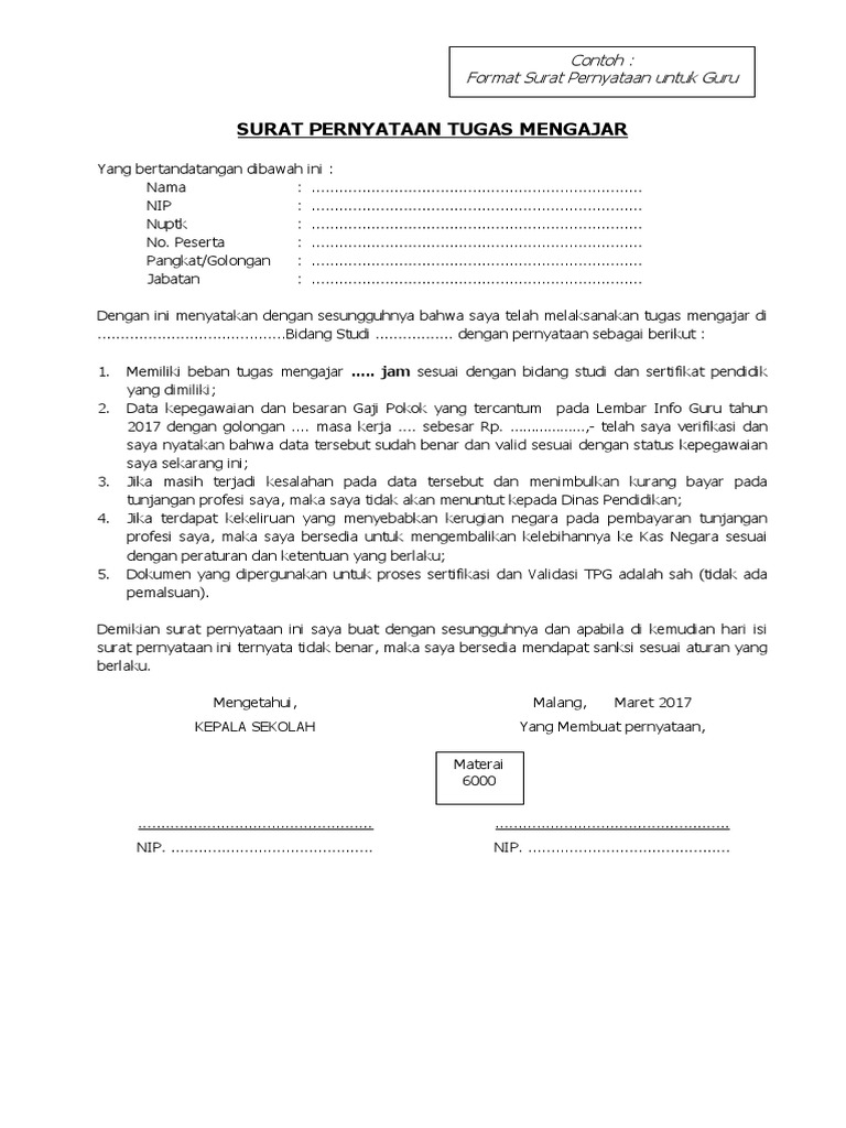 Contoh surat keterangan melaksanakan tugas guru skmt adalah surat yang dibuat oleh pihak sekolah kepala sekolah yang diketahui oleh pengawas pendidikan mata pelajaran tertentu dari kecamatan. Surat keterangan mengajar yaitu merupakan surat yang dikeluarkan oleh pihak sekolah kepada guru yang bersangkutan yang berisi pernyataan membenarkan bahwa seorang itu memang pernah menjadi guru atau masih aktif mengajar disekolahan tersebut. Surat ini isinya menerangkan tugas dan jumlah jam mengajar seorang guru. Berikut contoh sk pembagian tugas mengajar bagi guru dengan format terbaru untuk tahun pelajaran 20162017 untuk semester 1 maupun semester 2 nantinya dan dalam format ini tetap ada penambahan jumlah pada masing masing rombel yang diampu seperti yang sudah saya bagikan sebelumnya. Format contoh sk pembagian tugas mengajar terbaru 20192020 ini berbentuk word dan excel sehingga memudahkan dalam pengeditan atau perubahan edentitas sesuai dengan kondisi sekolah masing masing. Kumpulan format sk membagian tugas mengajar dan beban kerja guru tahun pelajaran 20192020.