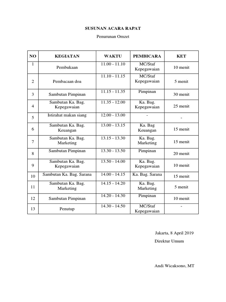Contoh susunan acara rapat. Adapun susunan acara pada pagi hari ini sebagai berikut. Contoh susunan acara dalam sebuah rapat rapat merupakan suatu kegiatan yang sering kita lakukan baik itu dalam dunia pendidikan pekerjaan lingkungan. Contoh notulen yang benar untuk anda yang terbiasa melakukan kegiatan berorganisasi seperti seminar diskusi maupun rapat tentu sudah tidak asing lagi dengan yang namanya notulen dan berita acaraunuk masalah berita acara rapat sudah pernah kita bahas di postingan sebelumnya oleh sebab itu kali ini kita akan membahas cara membuat notulen yang baik dan benar. Kadang kala suatu rapat tidak selalu tepat dan terasa membosankan. Contoh agenda rapat atau meeting. Salah satu administrasi yang baik adalah dengan dicatatnya semua kegiatan organisasi seperti seminar diskusi ataupun rapat.