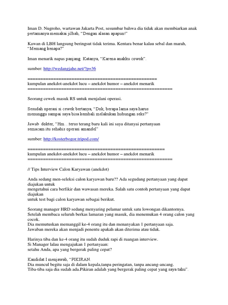 Contoh teks anekdot panjang. Kumpulan contoh cerita anekdot 100 lucu alami teks anekdot adalah cerita pendek yang mengandung unsur lucu dan mengkritik suatu orang yang biasanya merupakan orang terkenal kayak admin huek. Contoh teks anekdot panjang. Banyak orang yang menyukai membaca teks ini karena ceritanya sangat menghibur dan memiliki pesan moral. Contoh teks anekdot panjang teks anekdot adalah jenis teks yang tentu sering anda jumpai di berbagai macam media. Ada banyak contoh teks. Perkembangan zaman membuat teks ini kini dapat dengan mudah anda temukan di sosial media.