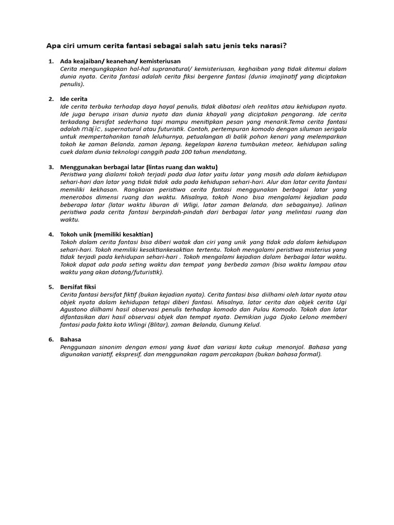 Cerita Fantasi Pengertian Gaya Bahasa Ciri Ciri Struktur