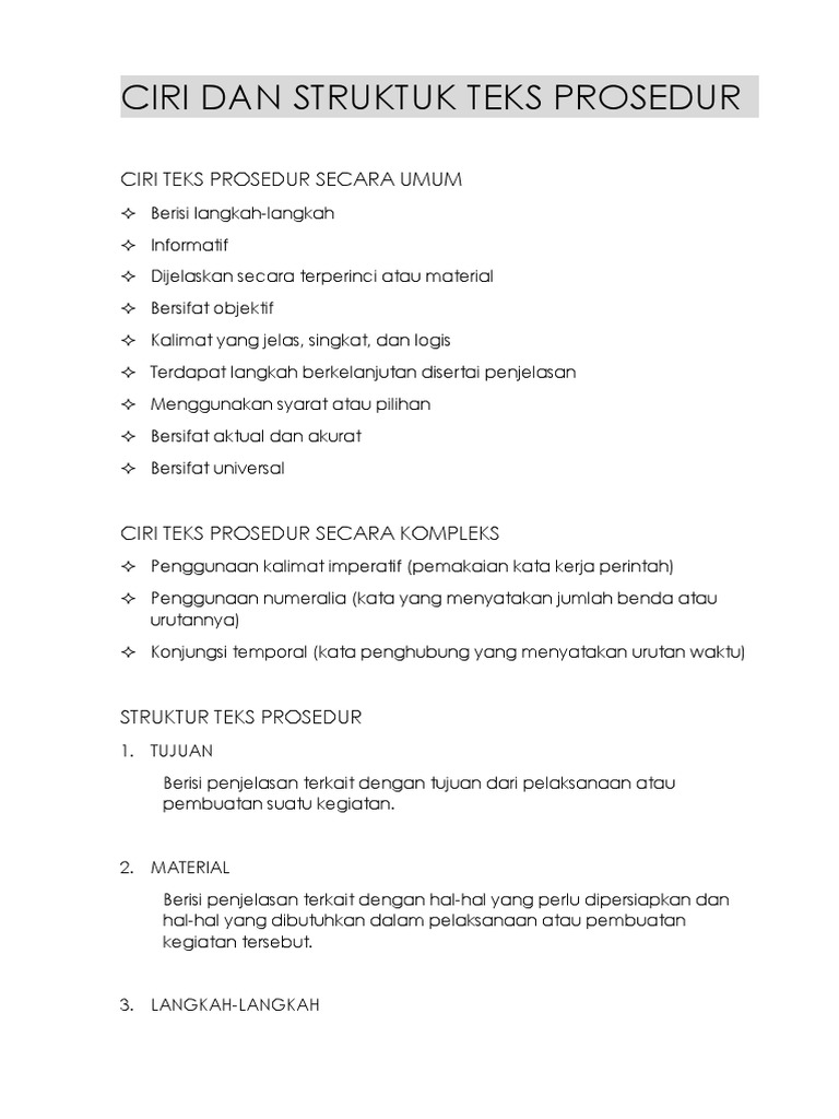 Teks Prosedur Pengertian Tujuan Manfaat Struktur Ciri