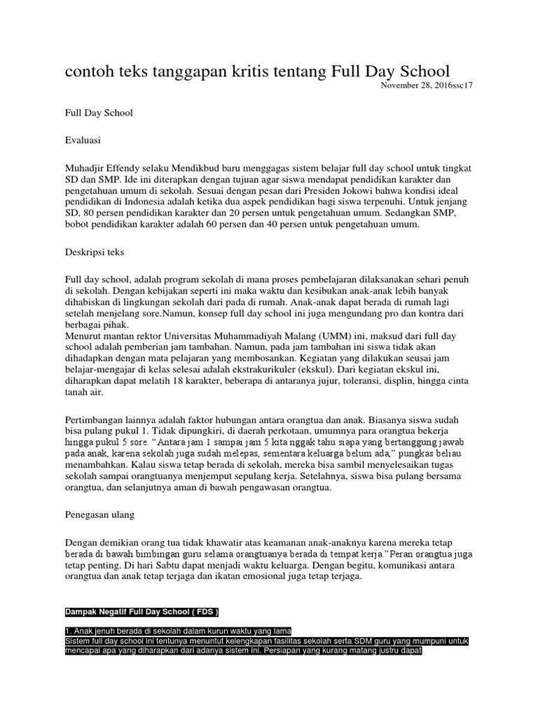 Maka dari itu adalah hal yang wajar apabila dua pihak atau lebih memiliki pendapatnya masing masing tentang suatu hal. Sma atau smk. Contoh teks tanggapan kritis tentang sekolah. Berikut ini merupakan contoh teks tanggapan kritis yang sebelumnya telah dijelaskan di atas. Bagi kamu yang sudah menyelesaikan pendidikan di smp mungkin akan mengalami kegalauan dalam memilih sekolah lanjutan antara sma atau smk. Salah satunya adalah dengan menggunakan teks tanggapan kritis.