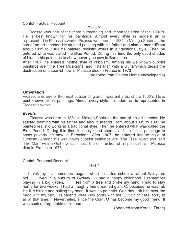 Contoh text recount singkat. Contoh recount text bertemu idola. Jika sebelumnya secara singkat telah dijelaskan mengenai recount text beserta 5 contohnya sekarang saya mencoba membocorkan lagi kumpulan 9 contoh recount text pilihan. Recount text descriptive text narative text dan expotion text. Itulah komponen dasar struktur pengaturan teks recount bahasa inggris itu harus ditulis. Contoh recount text recount text merupakan salah satu teks dalam materi bahasa inggris yang dibuat dengan tujuan menceritakan ulang berbagai kejadian dan peristiwa yang sudah terjadi di masa lalu. Ada beberapa macam jenis text yaitu.