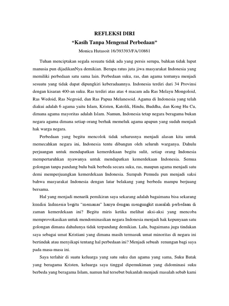 Contoh tugas refleksi diri. Penulisan ini bertujuan memberikan input mengenai cara menulis refleksi yang berkesan. Akal adalah anugerah yang tuhan berikan yang hanya ada dalam diri manusia itulah yang membedakan manusia dengan makhluk yang lainnya. Tugas refleksi diri setelah menjalani dua minggu perkuliahan di blok learning skills sekarang saya akan merefleksikan diri. Contoh proposal penelitian terbaru berlaku umum. Refleksi diri akhir kolaborasi kesehatan. Saya telah mengambil beberapa perkara sebagai iktibar dan panduan kepada diri saya untuk menempuhi cabaran pendidikan yang mendatang.