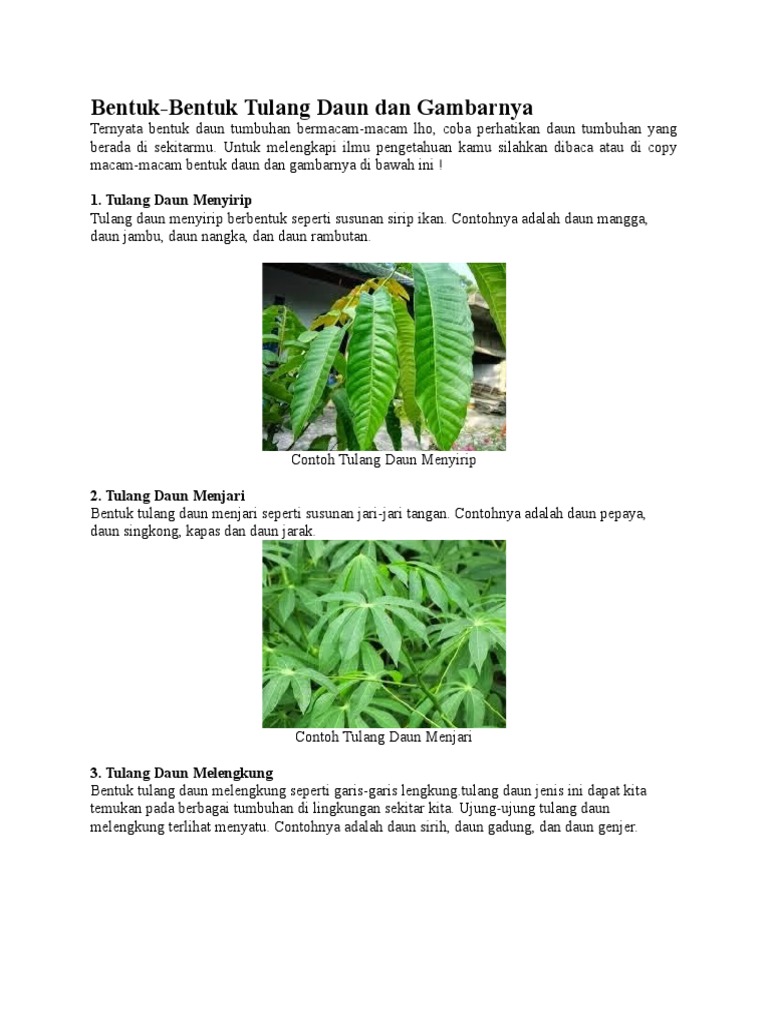 Contoh tulang daun melengkung. Daun dengan jenis tulang daun sperti ini dapat kita jumpai di berbagai tumbuhan lingkungan sekitar tempat tinggal kita. Salah satu cara untuk mengidentifikasi tumbuhan biasanya kita juga menggunakan susunan tulang daun. Contohnya adalah daun sirih dan daun genjer. Contoh tulang daun melengkung bentuk tulang daun melengkung seperti garis garis lengkung. Ciri dan contoh daun menyirip. Itulah beberapa contoh jenis daun melengkung yang bisa penulis sajikan buat sobat semua pada postingan kali ini.