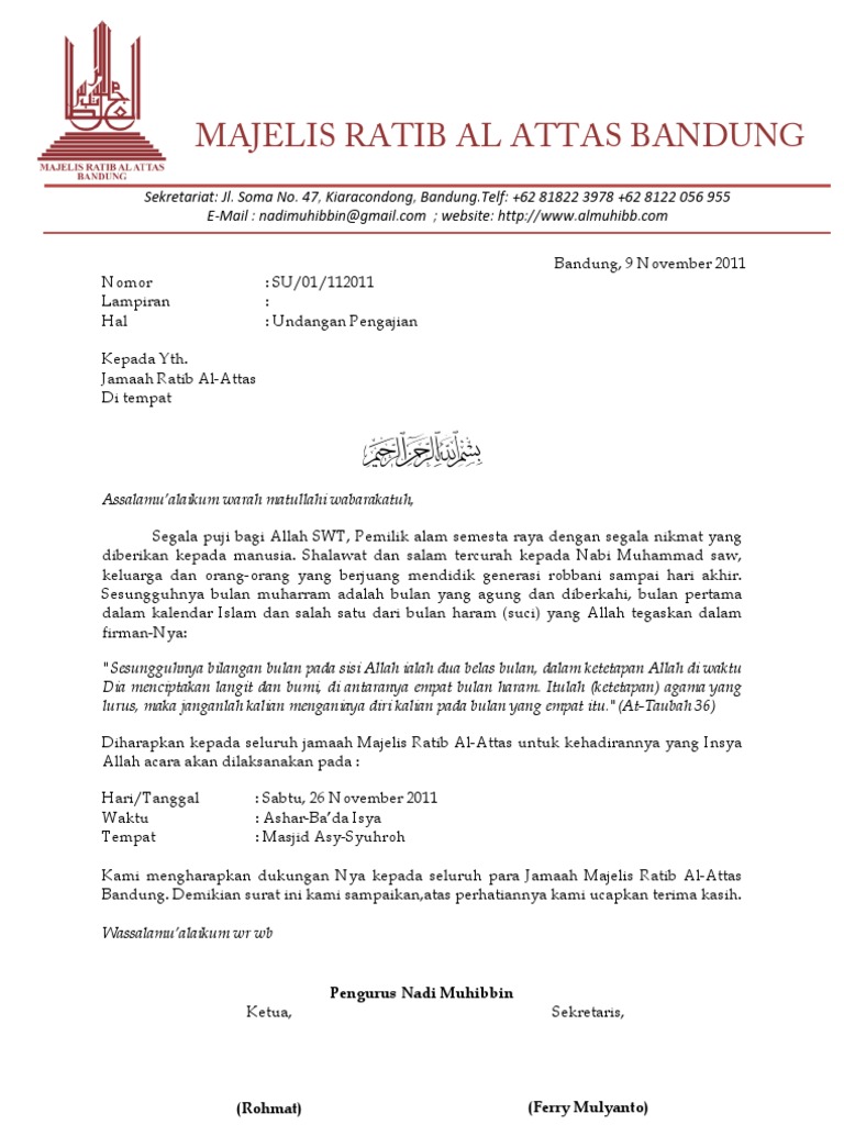 Contoh Format Surat Undangan Pengajian Akbar Haflah