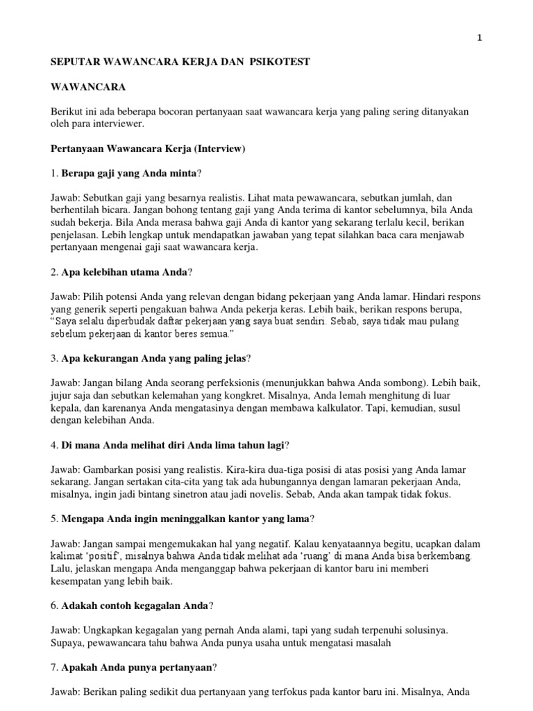 Ingat jangan melamar pekerjaan yang tidak sesuai dengan keahlian dan pengalaman anda. Nah salah satunya dengan mempelajari percakapan dibawah ini. Jadi persiapkan sebaik mungkin berikut akan kami ulas 35 pertanyaan populer saat wawancara kerja serta solusi jawabannya. Umumnya perusahaan atau instansi tempat melamar perkerjaan tidak memberi tahu wawancara akan menggunakan bahasa indonesia atau bahasa inggris. Wawancara kerja job interview merupakan tahapan yang harus dilalui oleh mereka yang sedang mencari pekerjaan atau mendapatkan pekerjaan barutak heran tahapan ini sering membuat deg degan atau stres bagi mereka yang akan menghadapinya. Anda akan memiliki gambaran apa jawaban yang harus jawab jika kamu sebelumnya mempelajari contoh pertanyaan pertanyaan yang paling umum saat wawancara kerja.