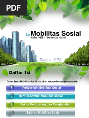Adalah perubahan susunan status orang orang dalam masyarakat baik secara vertikal maupun secara horizontal. Contoh konkretnya adalah ketidakseimbangan jumlah lapangan kerja yang tersedia dibandingkan dengan jumlah pelamar kerja. Mobilitas sosial menggambarkan gerakan perubahan. Faktor pendorong mobilitas sosial pengertian mobilitas sosial merupakan perpindahan status sosial sekelompok orang atau individu ke status yang lainbentuk bentuk mobilitas sosial bisa terjadi secara vertikal maupun horizontal. Adapun faktor penghambat dari mobilitas sosial yaitu. Jika faktor faktor di bawah ini masih ada maka akan sulit untuk masyarakat melakukan mobilitas sosial.
