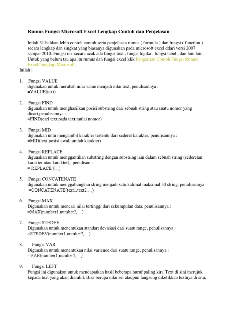 Jika kondisi yang dianalisa sesuai dengan kriteria true maka akan menghasilkan nilai pada bagian valueiftrue sebaliknya jika kondisi yang dianalisa tidak sesuai dengan kriteria false maka akan menghasilkan nilai pada bagian valueiffalse. About microsoft office excel digunakan untuk melihat penjelasan tentang excel. Inilah 31 bahkan lebih contoh contoh serta penjelasan rumus formula dan fungsi function secara lengkap dan singkat yang biasanya digunakan pada microsoft excel ddari versi 2007 sampai 2010. Fungsi value digunakan untuk merubah. Untuk yang belum tau apa itu rumus dan fungsi excel klik pengertian contoh fungsi rumus excel lengkap microsoft. Fungsi rumus proper adalah untuk mengubah karakter utama dari semua kata menjadi huruf besar dan sisanya adalah huruf kecil.
